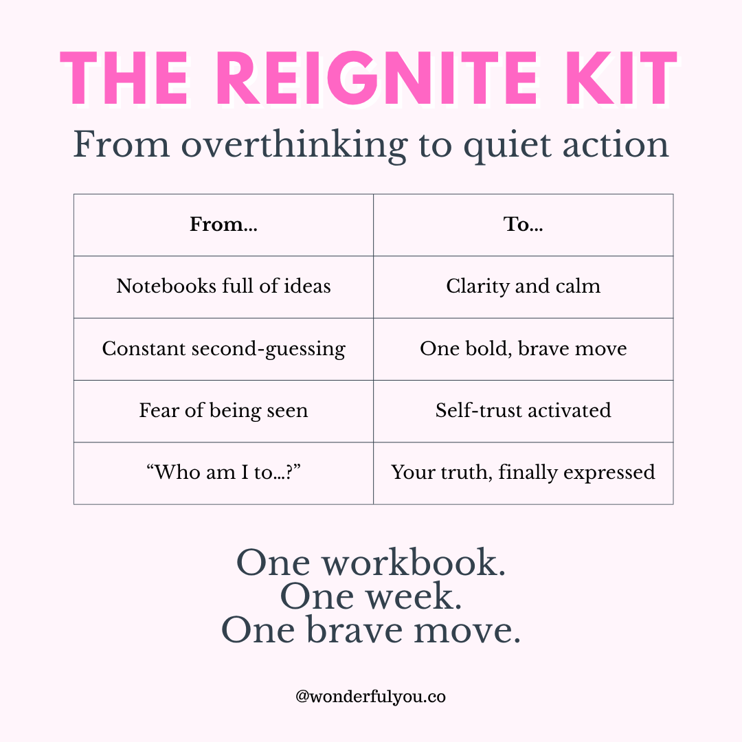 I blend psychology, nervous-system science, and playful creativity so quiet women can be seen, softly but unmistakably.